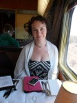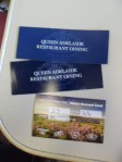 after our champagne reception in the ‘Outback Explorer Lounge’ (apparently they are all named after, well, outback explorers). They simply did not stop feeding us, with 3 courses for lunch, dinner, breakfast and lunch on the second day, all prepared fresh on board and served at our white-linen-tablecloth-covered tables. Handily the cheapest wine on the menu was a sparkling, so we made do with that :-).
