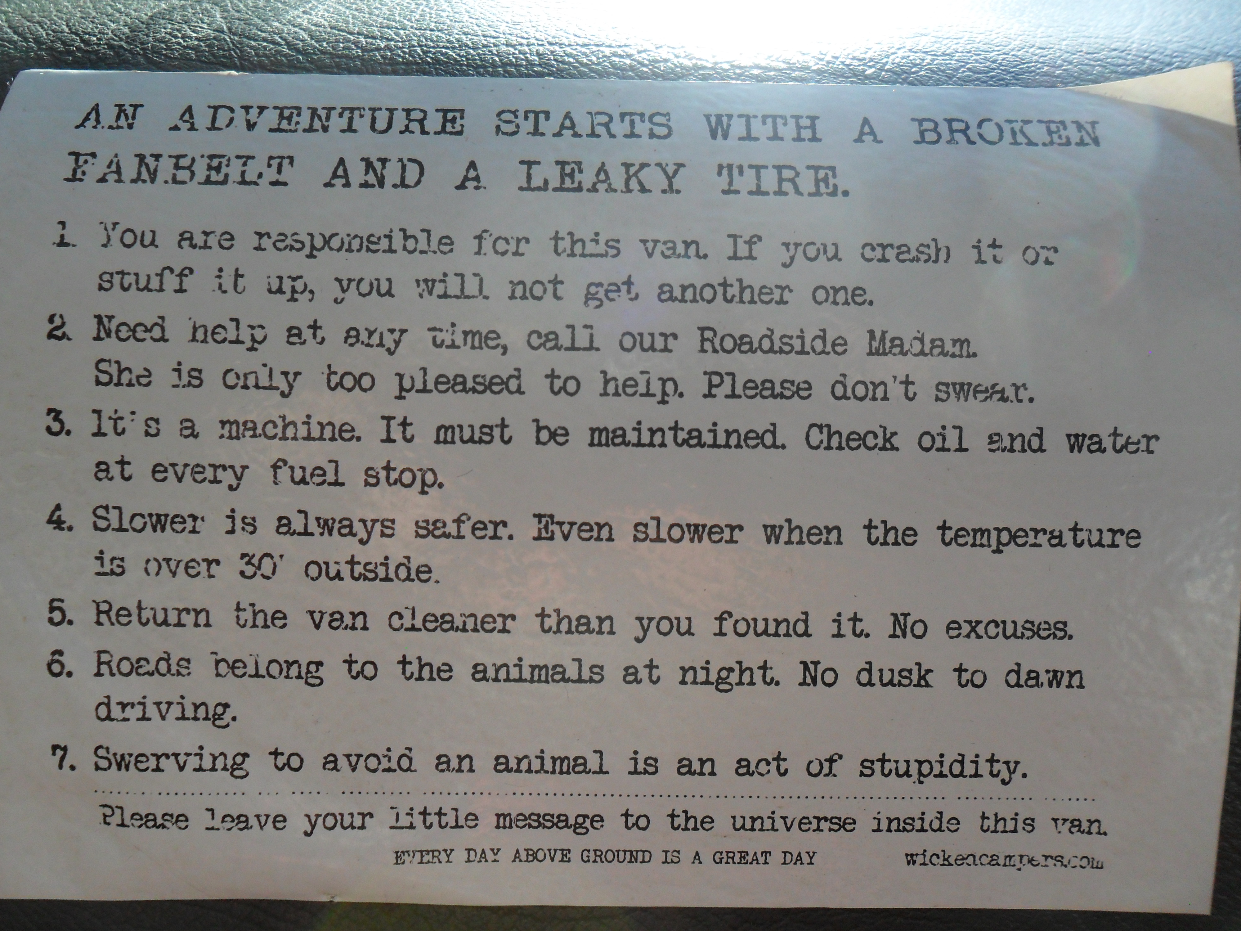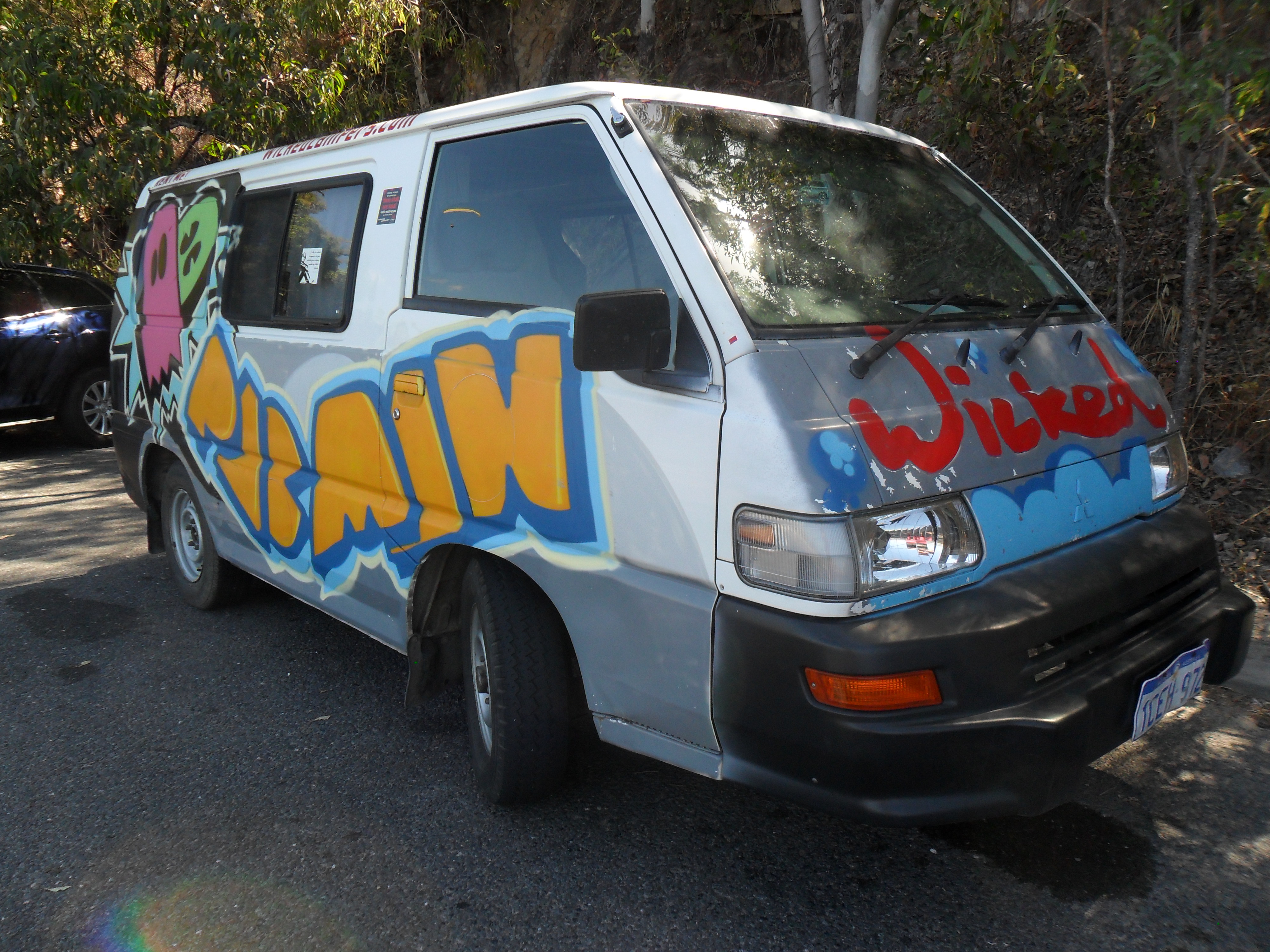 After another very average night’s sleep in the Waterfront Global Backpackers we picked up our slightly embarrassing Wicked Camper: