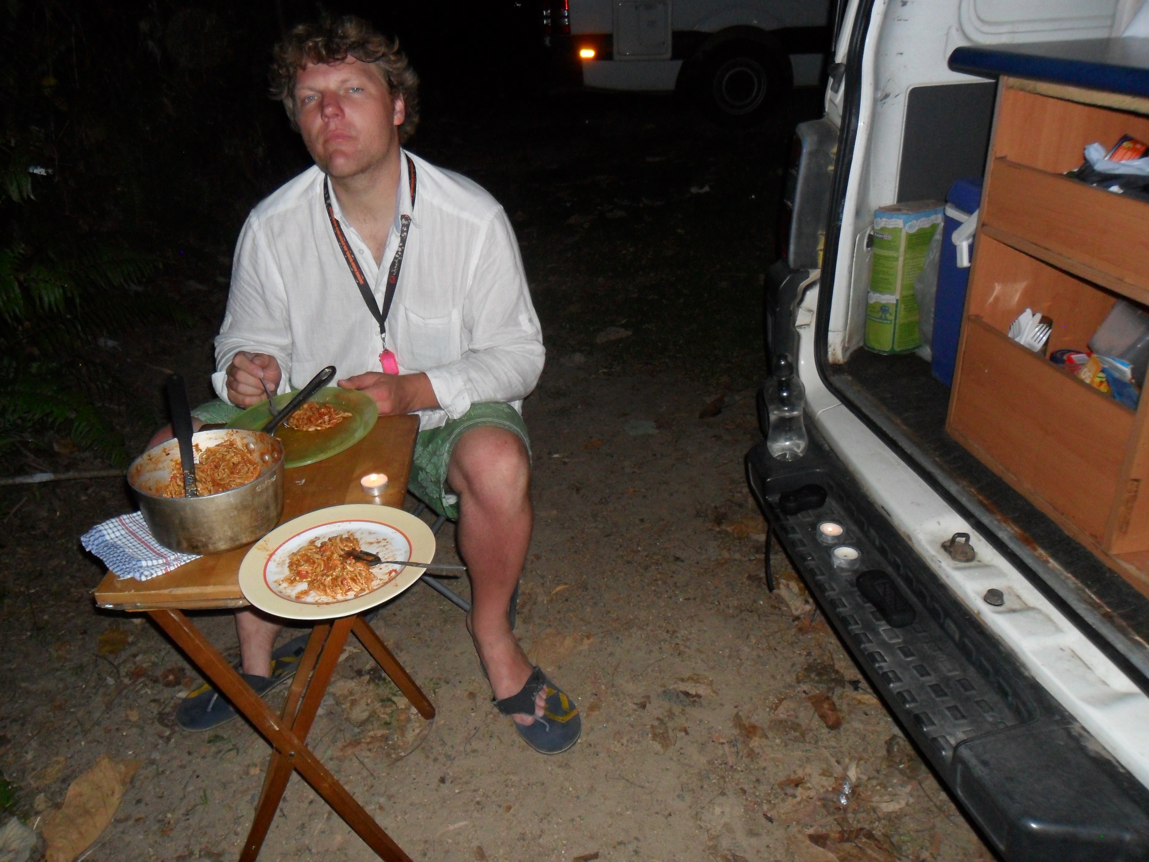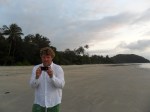 Back at Cape Trib we did another rainforest boardwalk and spotted some fresh cassowary poo although no actual cassowaries (boo!) then sat on the beach with a bottle of fizzy wine, watching some backpackers play beach cricket, until who should come wandering along the beach but Phil and Enrico, two of the people who had been on the Vagabond with us…after a chat with them, we went off to make dinner, then ran into them again in PK’s bar so the evening was rounded off with too much beer.