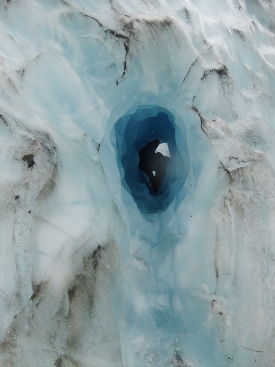 After getting to about 800m up, nearly at the main snowfield, we had a quick sandwiches lunch as it was incredibly cold and wet, then started the descent via a different route to take us through an amazing ice cave about 6 metres long:
