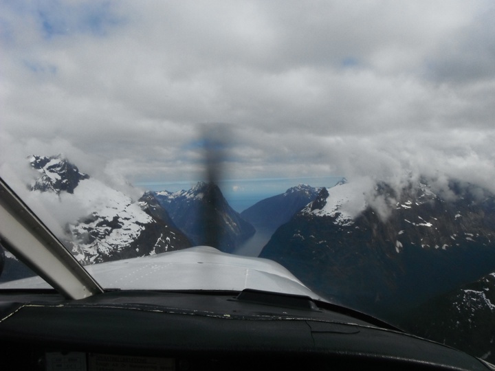 Thursday was a boring work day, then Friday was a real treat: we’d decided to fly to Milford Sound instead of driving the 4.5 hours each way trip, so at 9am we were collected from our camp site and driven to the airport where we met Captain Teri Muirhead who flew us to Milford Sound in this tiny six seater Piper Cherokee Six: