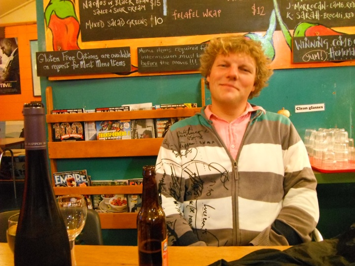 In the evening we drove to Arrowtown to see a film (The Guard, a very good film as it turned out, but somewhat secondary to the cinema itself!) at Dorothy Browns, a tiny independent cinema with beautiful decor that serves cheese and wine: