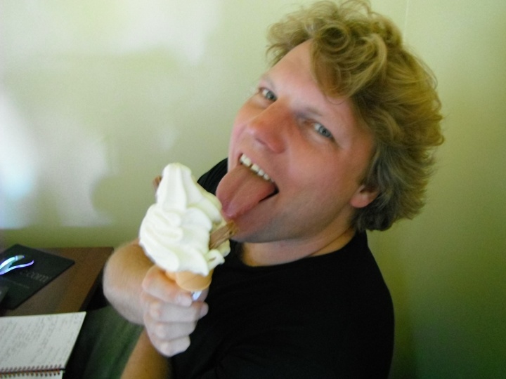 Sadly we had to work for the whole of the next day for our French clients…at one point we heard a REALLY annoying mobile phone ring, and we both looked around for some time to try and find it before looking out of the window and realising it was the ice cream van! I had to run after it to acquire this rather splendid Mr Whippy for Randall:
