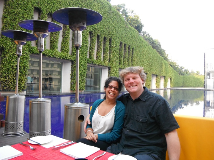 Randall and Farah – terrace of 361° bar/restaurant, overlooking the ‘reflection pool’.