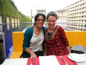 At Hauz Khas village we met Farah, a friend from London who had just arrived in Delhi for a week’s work in Gurgaon, for lunch at Gunpowder which was lovely, South Indian food on a table overlooking the lake. However, no booze so we caught a taxi back to Farah’s very posh hotel, the Oberoi in Gurgaon, for pudding and a bottle of wine: