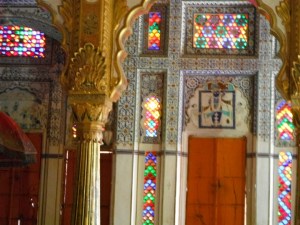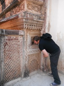 Randall doing his best impression of a Rajput princess peeking through the jali at the court activities below.