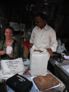 The next morning we finally managed to get up and go to Sassoon Dock, the main fish market of Bombay. The boats come in and the fish gets sold to the wholesalers as it comes off the boat, lots of yelling and jostling for position, with similar hecticness as the coolies (mostly women with large baskets on their heads) shuttle orders back and forward either to trucks or to ‘retailers’ with stalls/spots in the marketplace. Photography is supposedly not permitted so here are some google images: