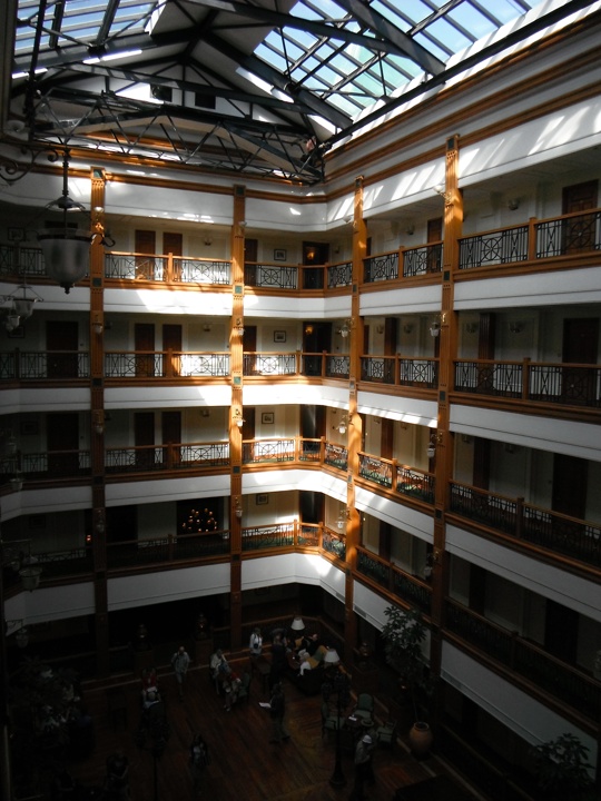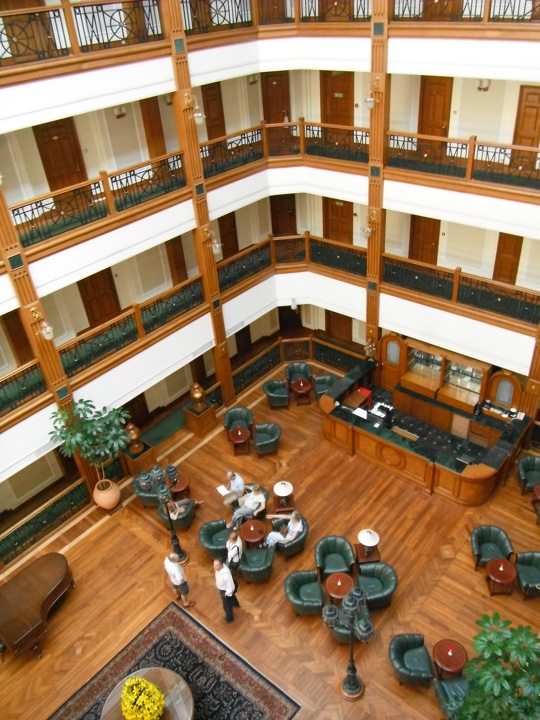 The atrium around which the hotel is set, with a piano bar/lounge.