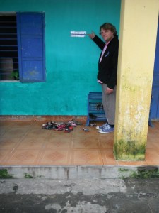 I ordered some more clothes from a different tailor where I had seen a coat I liked, and we collected Randall’s shoes, both pairs of which were a cinderella-style perfect fit – the copy of his old shoes (which we had been trying and failing to replace for ages) was really impressive. My items from the first tailor were OK – a couple needed some tweaking so we went for a drink next door and then to try and find something to take to the school in Mr Phuong’s village (we found an art shop selling cheap poster paint and brushes – result!) before picking up the fixed and finished items.