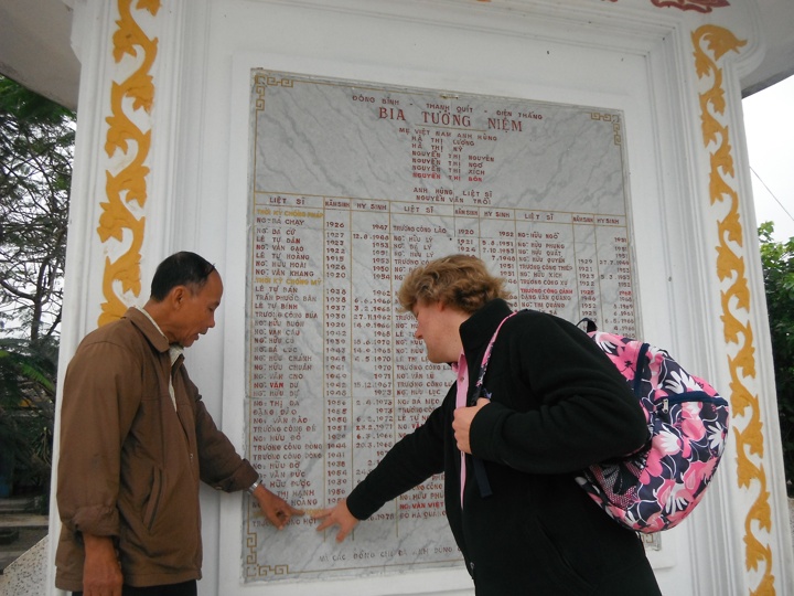 It was with some trepidation that the next day we launched ourselves onto Vietnamese roads on a tiny 50cc scooter (I say ‘we’ – Randall drove and I sat on the back trying not to look at the oncoming traffic), but the visit to Mr Phuong’s house and village was definitely worth it. We got a fascinating history lesson about Vietnam – Mr Phuong had fought for South Vietnam against the communists and had subsequently spend a year in a ‘re-education camp’. He explained how, like most civil wars, the North/South, Communist/Free split had driven families apart and still has a huge influence on what jobs and education a person can get.
