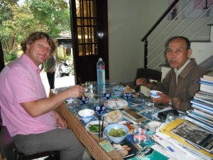 In the evening we went for dinner in town and met Mr Phuong, a Vietnamese man who runs an informal tour to his village for interesting/interested people that he meets in the restaurant. We agreed to meet him at our hotel on Tuesday with a rented moped so we could follow him to his village half an hours ride away.