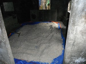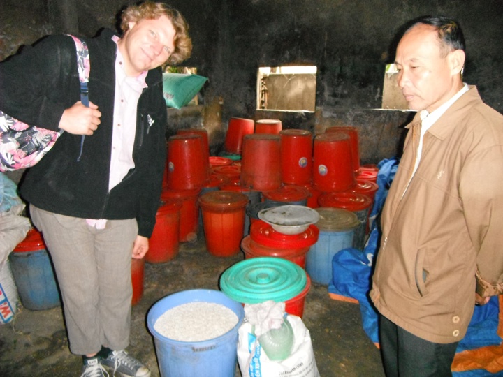 Boiled rice drying – to be made into rice wine, another element of the family business!