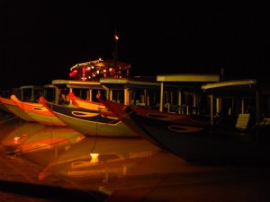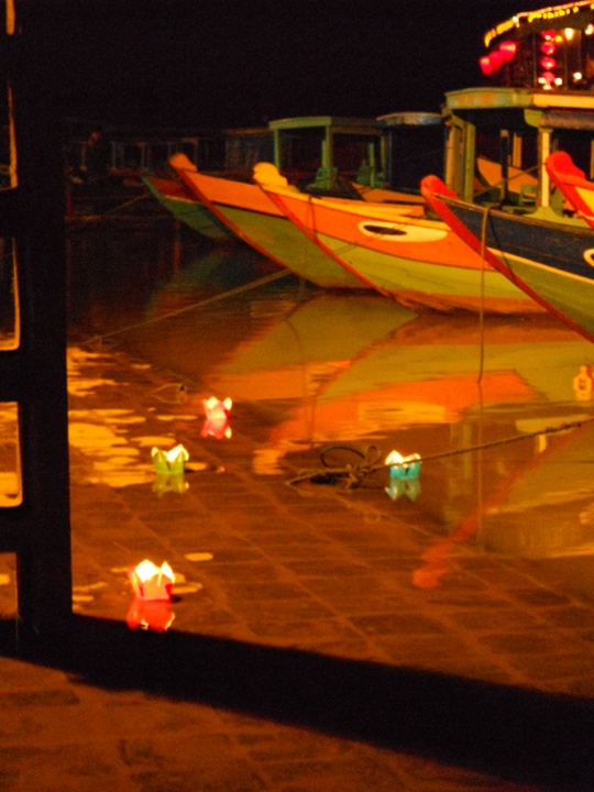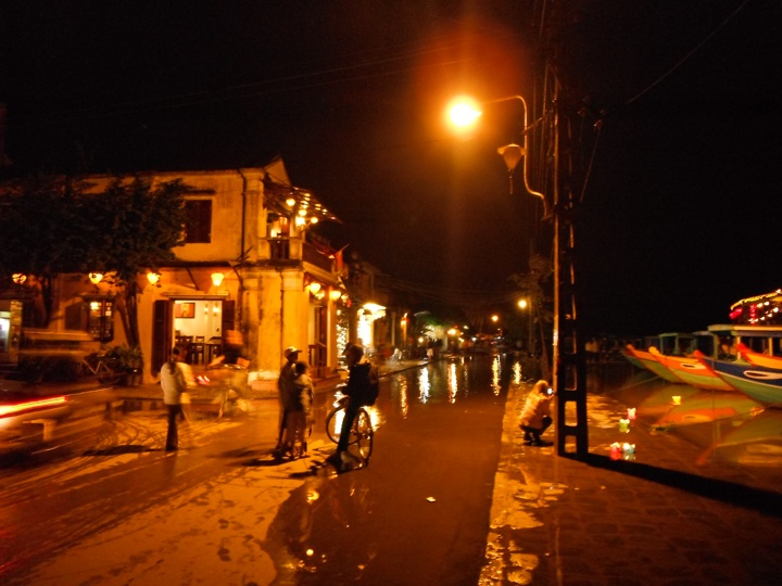 It was raining when we left but we had a quick wander around. The roads near the river were all flooded – apparently it was a high spring tide; the ‘main’ floods had finished the previous month. Indeed, the next day when we went back in daylight the river was back within its banks; however the paper lanterns floating on the flooded streets were quite lovely, and the whole area was beautifully atmospheric: