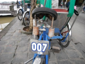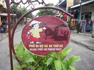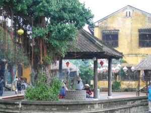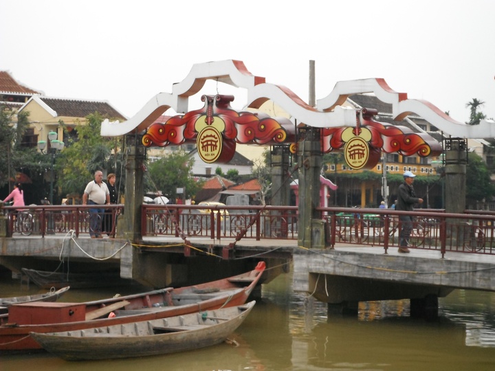 We arrived at Da Nang station at 10.30 am after a rather bumpy night and immediately bundled into a taxi to Hoi An with our two cabin-mates. The taxi driver thought it was amusing to play us various versions of Xmas carols, including a Vietnamese version of Jingle Bells and a hard house version of same, complete with sinister Santa voice shouting ‘Ho Ho Ho – Have YOU been a good boy?’. Think it would play well in Fire.