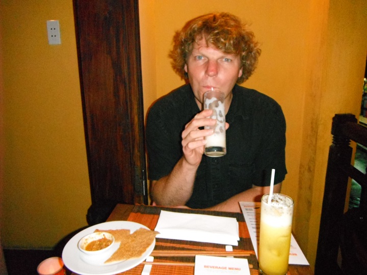 After sorting out all our check-in business, doing some minor tech support for the hostel owner (helping him update his Hostelworld.com page) and handing over our laundry we headed for food at the Sixth Sense cafe, marvelling at their cunning pulley system for delivering food from the kitchen on the ground floor to the terrace cafe on the 3rd floor.