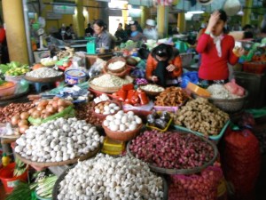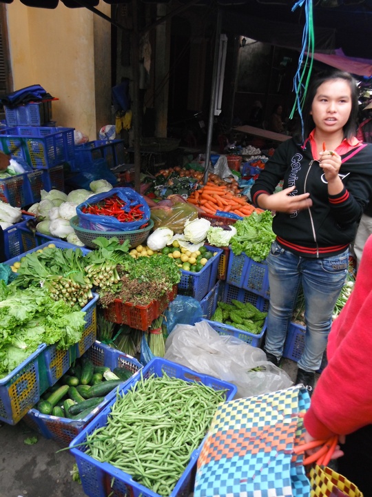 After pick-up from the hotel, our group of 9 was led around Hoi An market by Ms Hoa and Bin the chef who picked out ingredients.