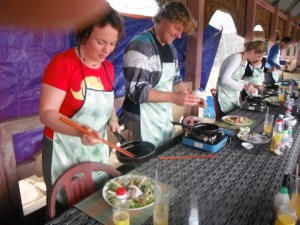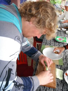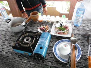 Our cooking station – luckily for us, someone else had done all the chopping while we were out and about on the island.