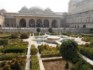 Once we were back on land again we thought we would go for ‘English High Tea’ at the Fateh Prakash as it had been recommended – however it was served in the (deserted) indoor restaurant not the lake terrace bar which seemed a waste, and we couldn’t even have a cocktail in the terrace bar as it was closed (something to do with the Republic Day stuff) so that was a disappointment – instead we found the outdoor bar at the Shiv Niwas (around the pool not facing the lake so not really the same) and had a rather expensive and very average lunch – food splotches on the placemats, the menus and the napkins, and cheap, nasty thick glasses for the sparkling wine – definitely NOT 5*!