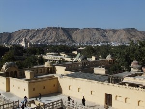 The Brahma temple, seen across the lake and behind the Pushkar Lake Palace Hotel