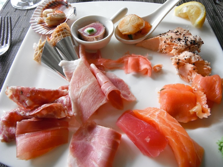 Antipasti – smoked salmon, gravadlax, roasted vegetables etc