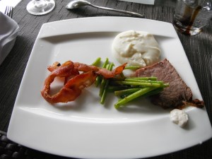 Admirably restrained main course – roast beef & horseradish, mash & veg.