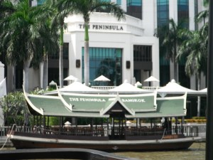 Our E&O package included a night at the Bangkok Peninsula hotel where they dropped us after the interminable bus trip from Kanchanaburi. It was utterly fabulous so we immediately rejected any thoughts of checking into a Khao San Road hostel the next day, and broke the bank by extending our stay for the next 3 nights. Naughty but very, very nice.