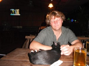 and a better one at The River View, a ramshackle, cat-and-kitten-infested family business with a swish-looking new hostel/hotel being built out the back between the street and their river-facing terrace and a nice line in thin-crust pizza, pasta and burgers as well as the usual staples. This will definitely be the place to stay as well as eat when the building work is finished.