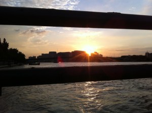 Sunset over the Chao Praya from the pier, waiting for the river taxi.